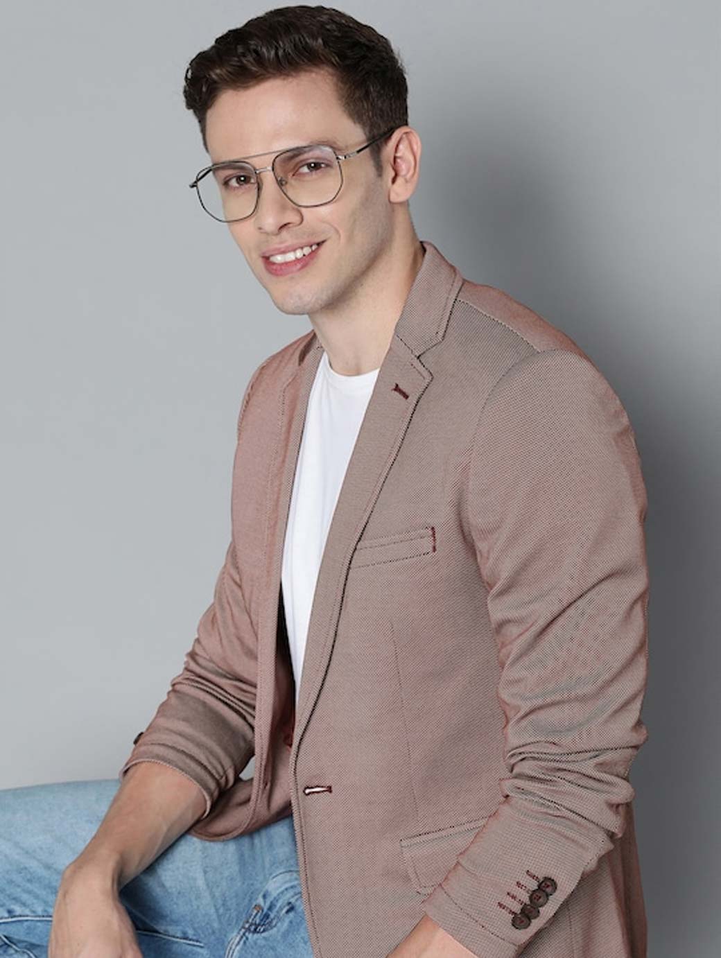 Men Brown Solid Single-Breasted Blazer