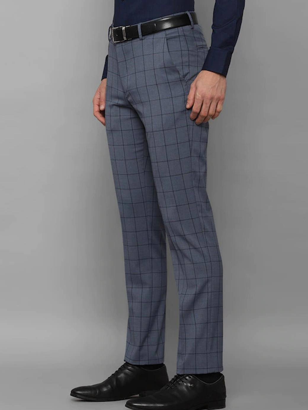 Men Grey Checked Slim Fit Trousers