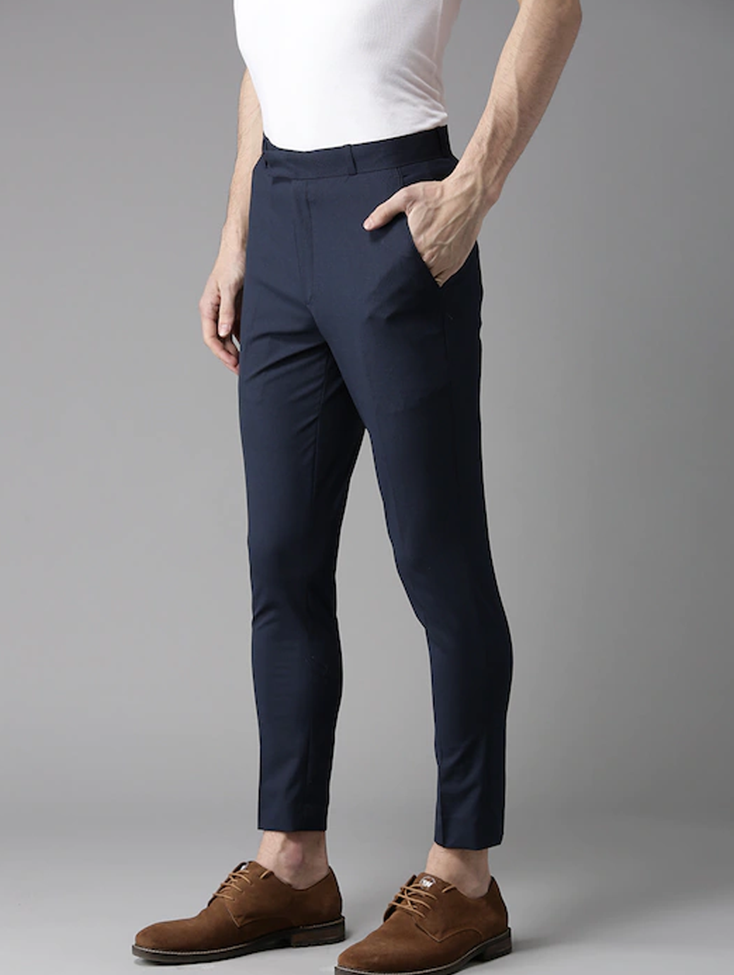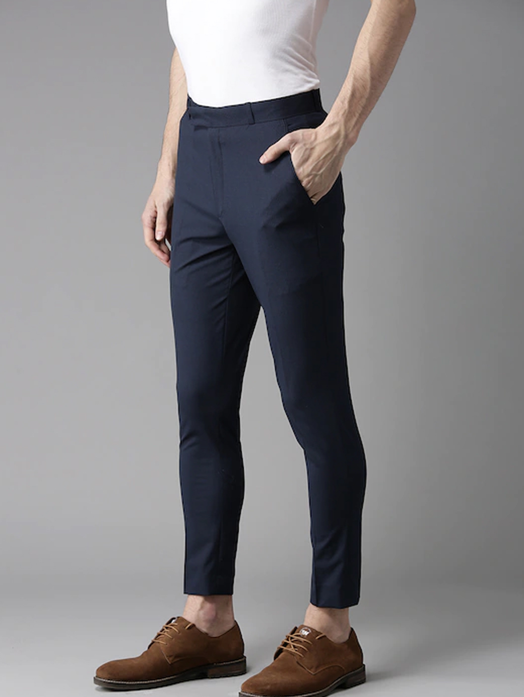 Men Navy Blue Tapered Fit Trousers