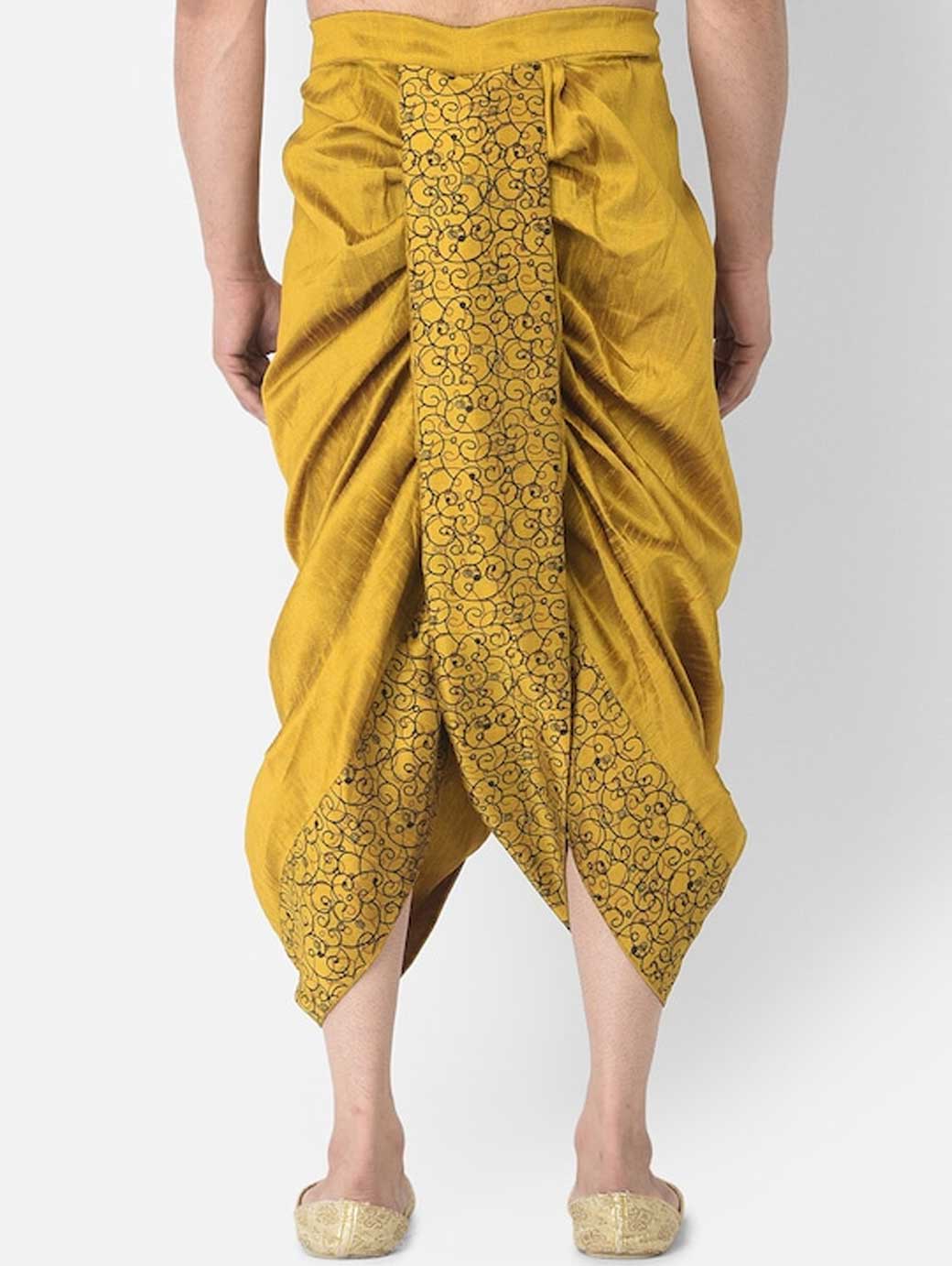 Men Yellow & Black Printed Dupion Silk Dhoti Pants