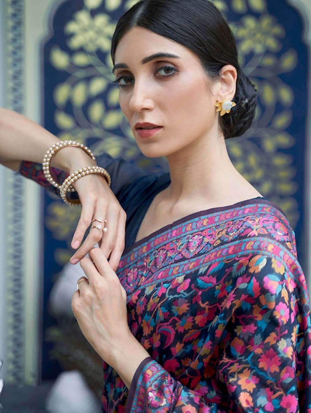 Navy blue and pink banarasi saree