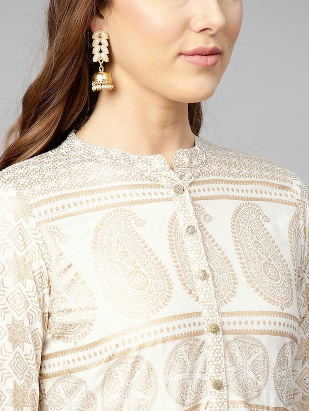 Off-White & Golden Ethnic Foil Print Panelled Anarkali Kurta