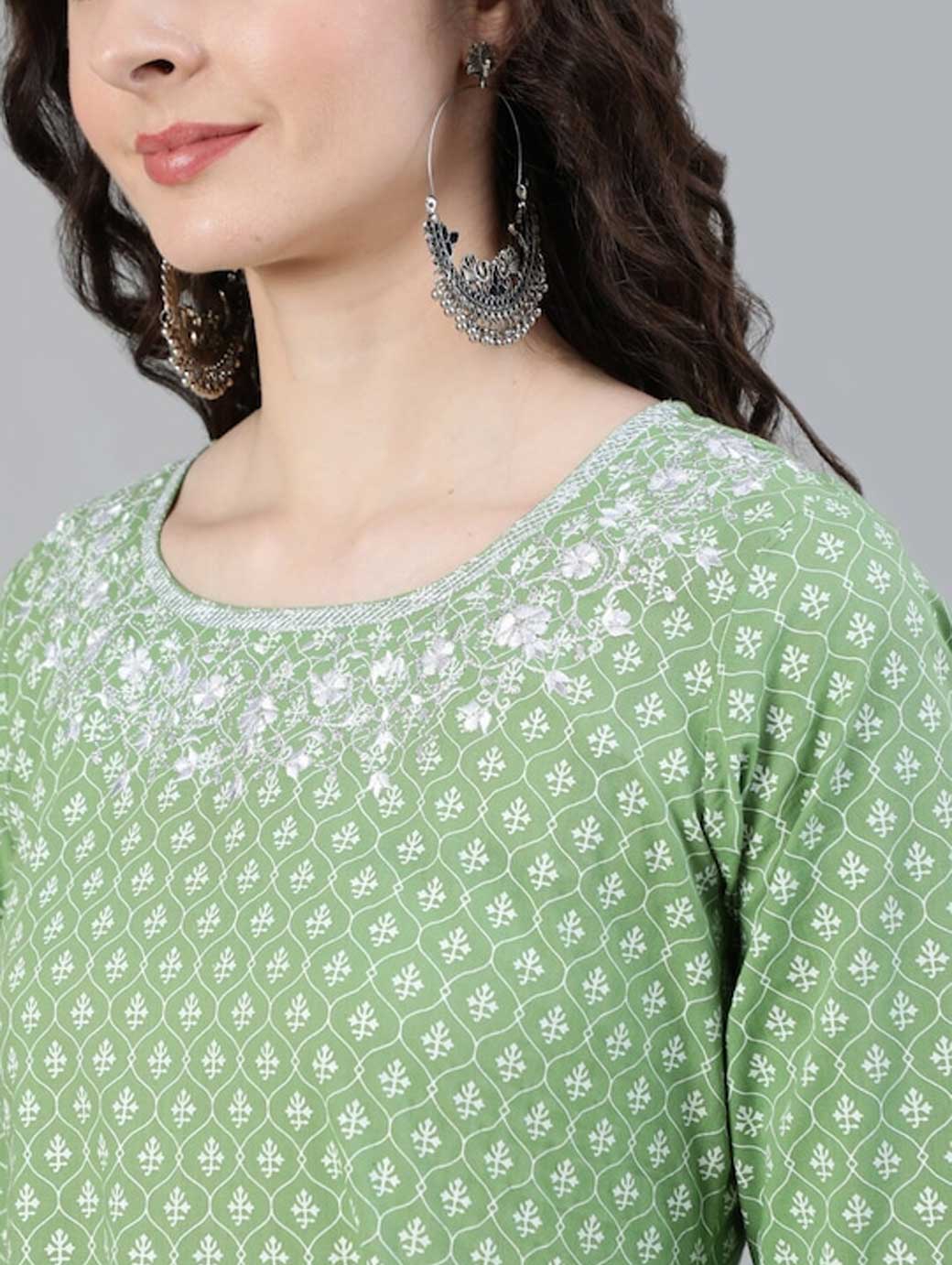 Women Green and White Ethnic Motifs Printed Handloom Anarkali Kurta