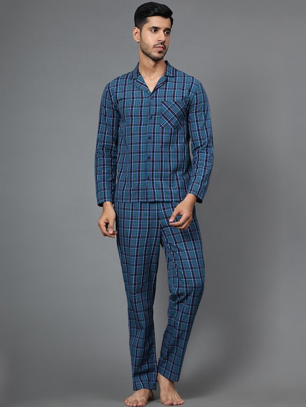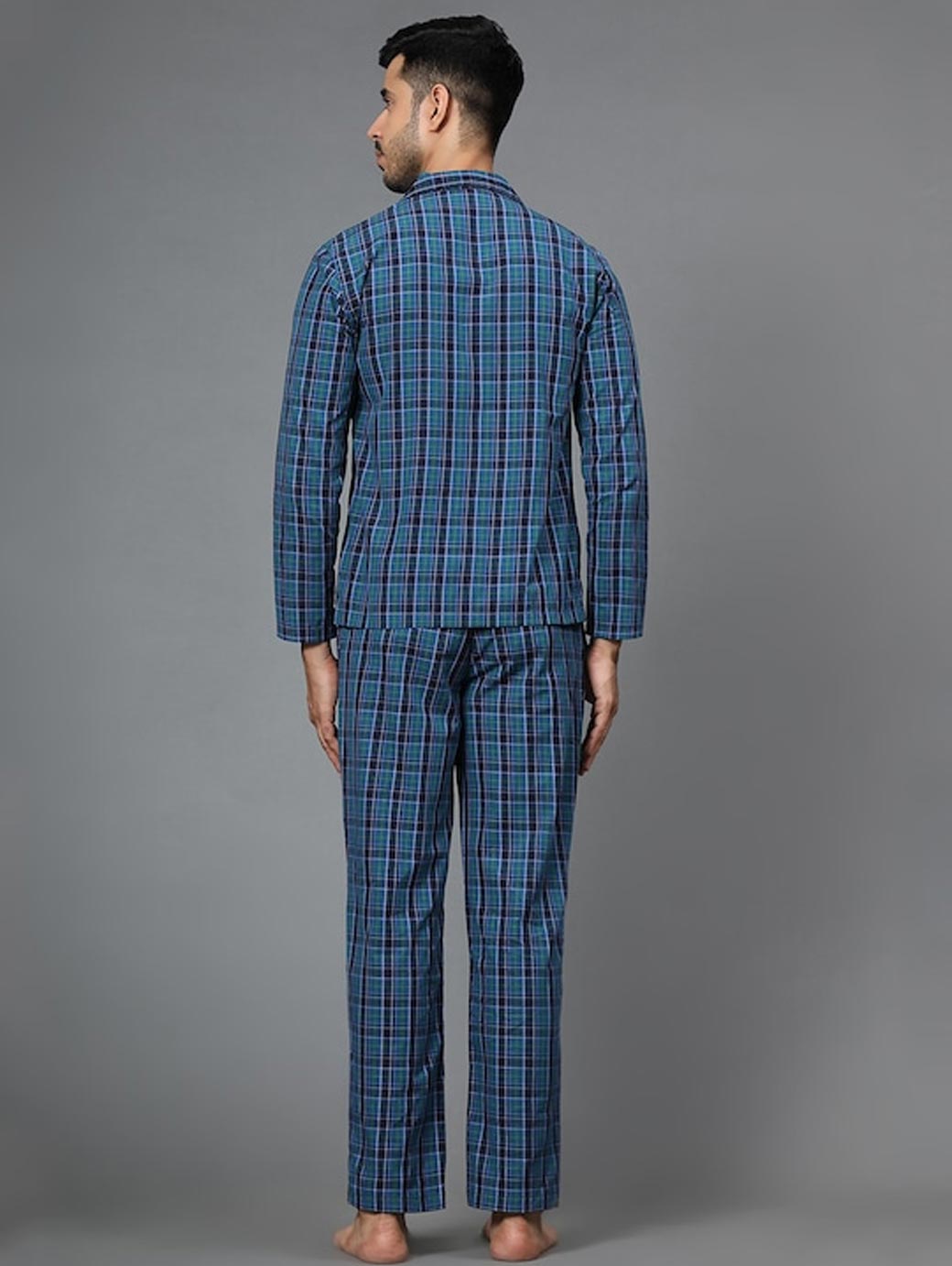 Men Blue Checked Night suit