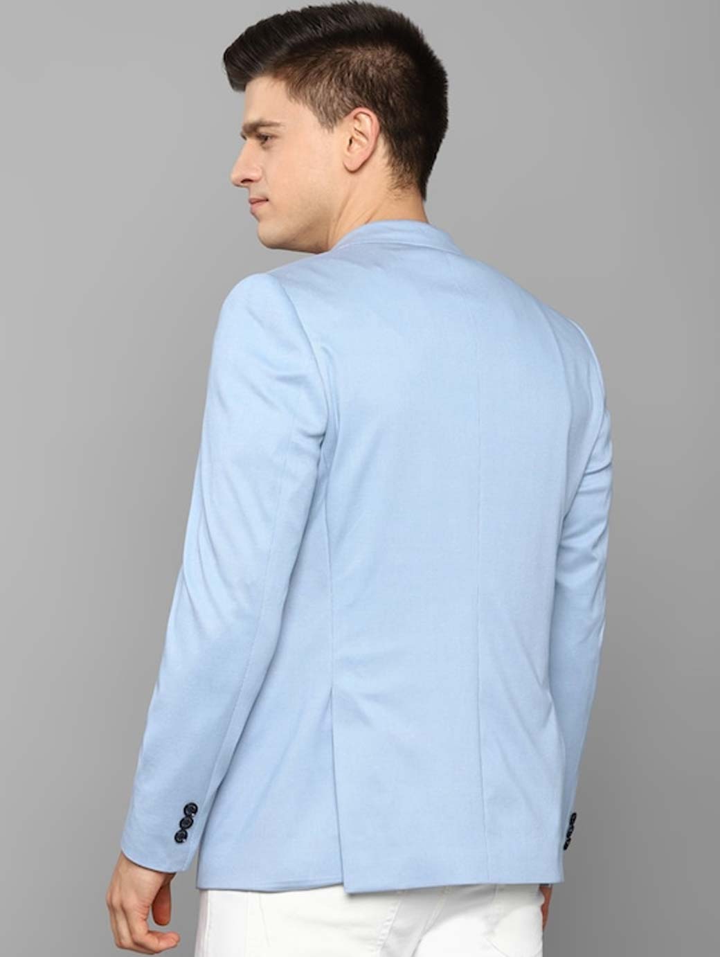 Men Blue Solid Slim-fit Single Breasted Formal Blazer