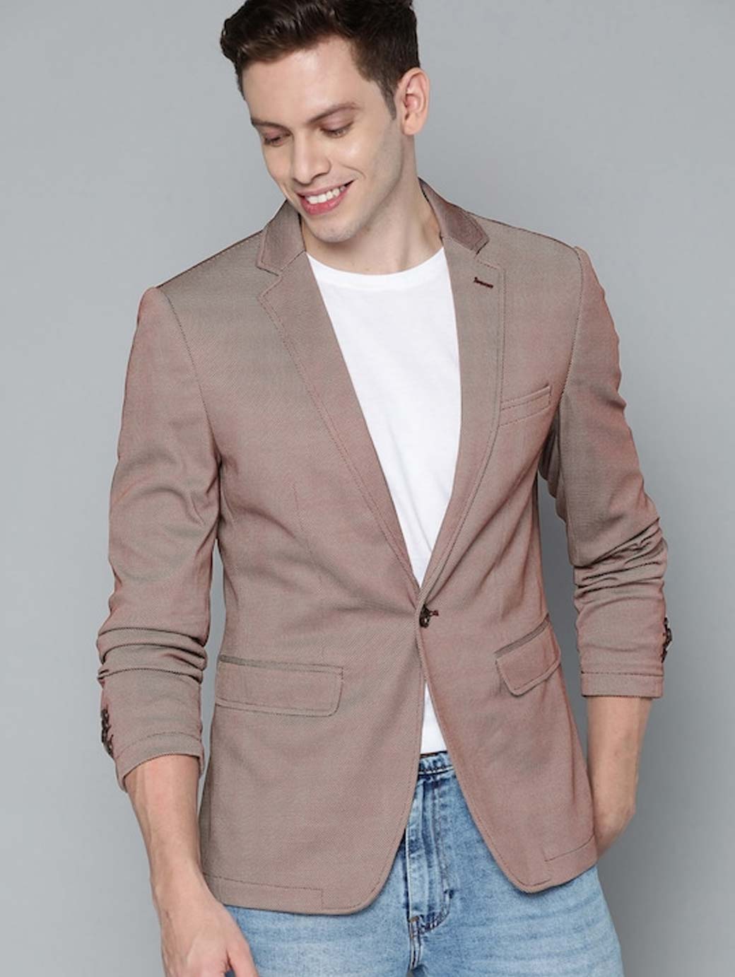 Men Brown Solid Single-Breasted Blazer