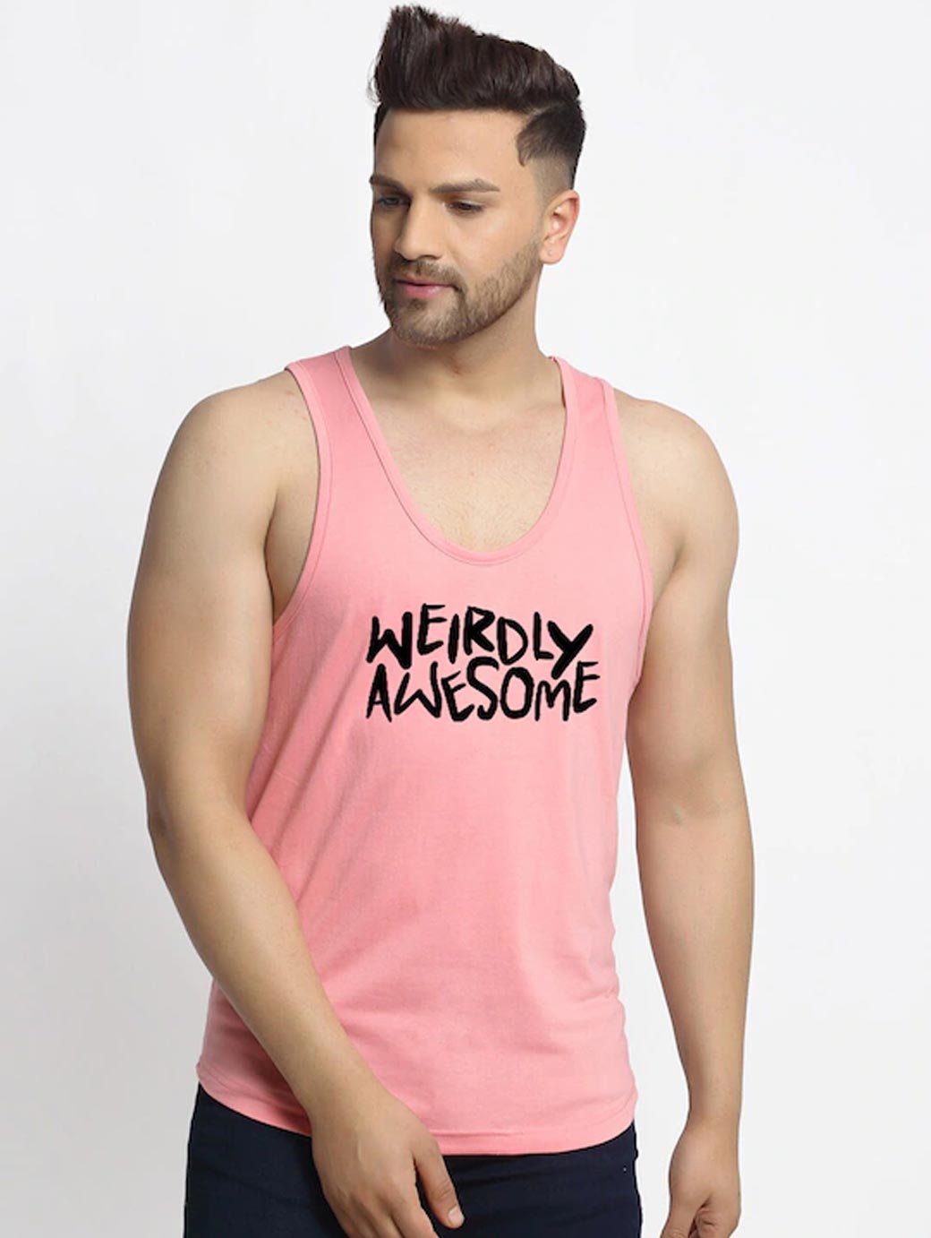 Men Coral-Pink Printed Pure Cotton Innerwear Gym Vest