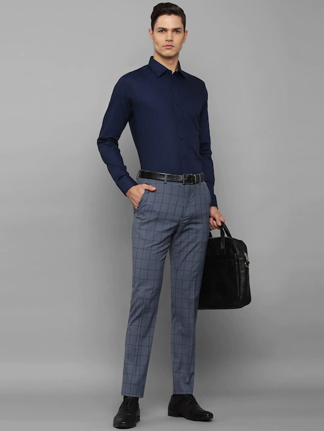 Men Grey Checked Slim Fit Trousers