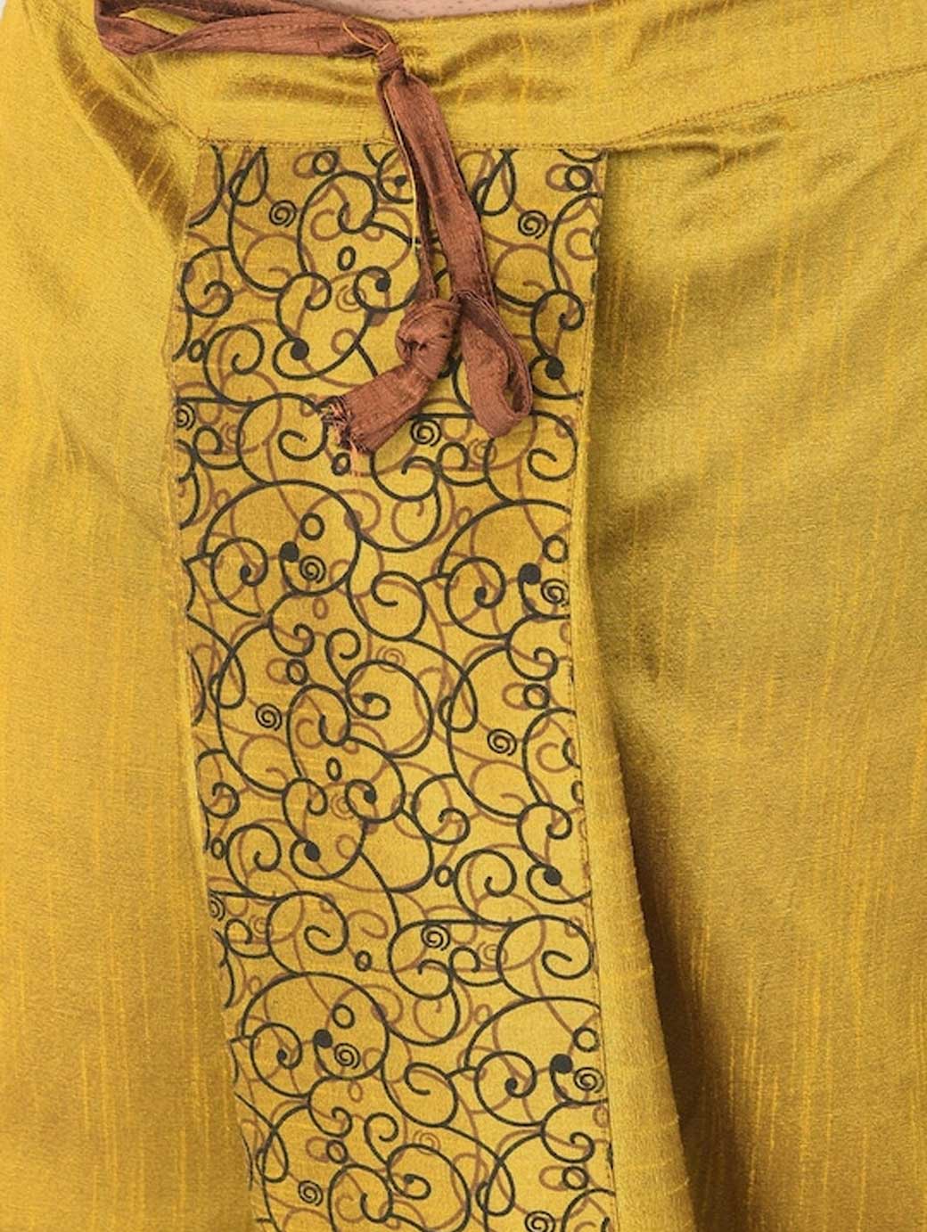 Men Yellow & Black Printed Dupion Silk Dhoti Pants